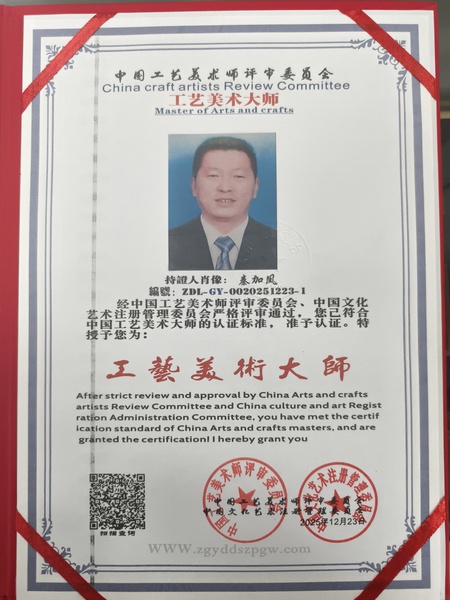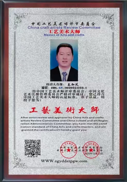2025年12月21日,中国玉雕界迎来里程碑式时刻——经中国玉雕大师联合会专家组历时数月的严格评审,玉雕艺术家秦加凤先生凭借卓越的艺术造诣与行业贡献,同时荣获"中国认证玉雕大师"与"中国认证工艺美术大师"两项权威认证。这一殊荣不仅是对其三十余载深耕玉雕艺术的最高礼赞,更标志着中国玉雕行业在标准化认证体系建设中迈出关键一步。